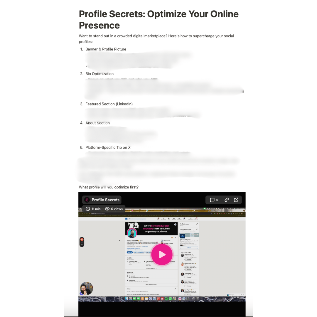 Profile secrets are about upgrading your profiles across Facebook, LinkedIn, X, and Instagram.